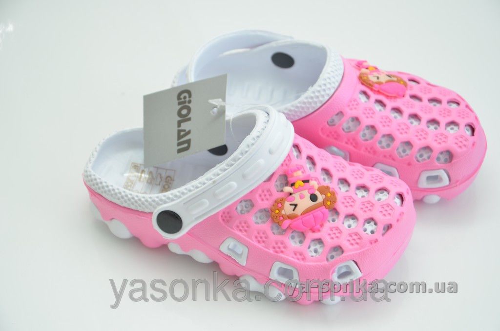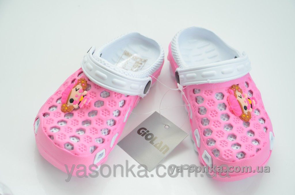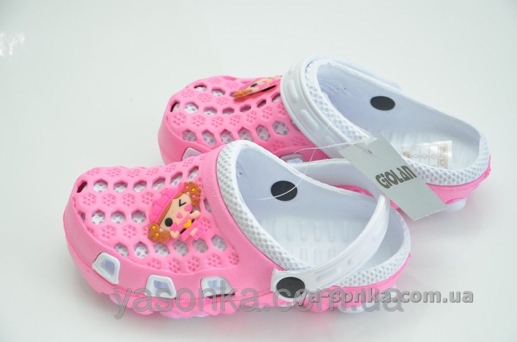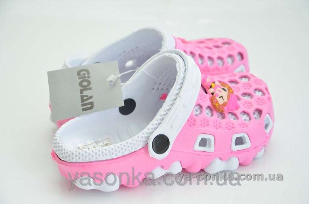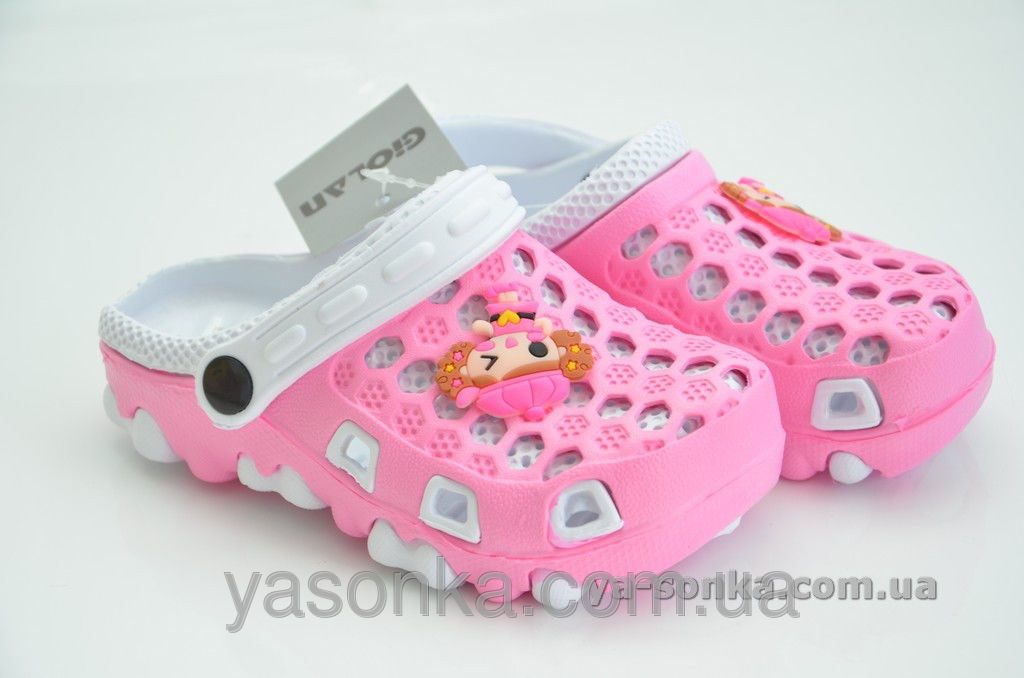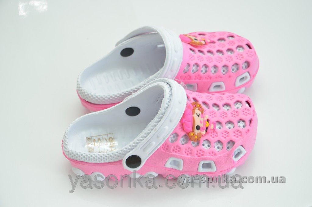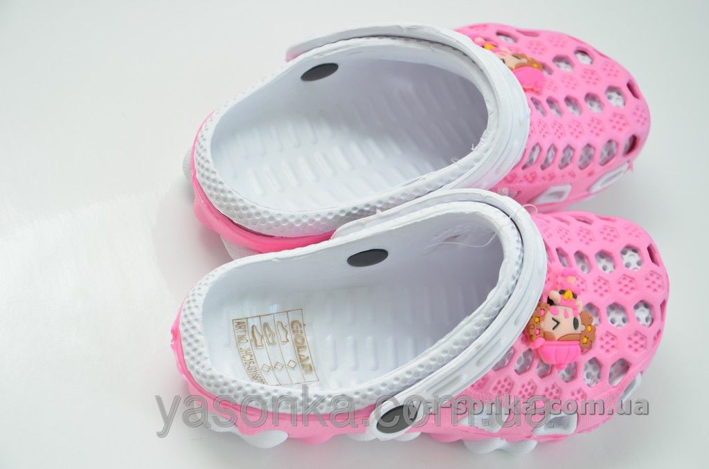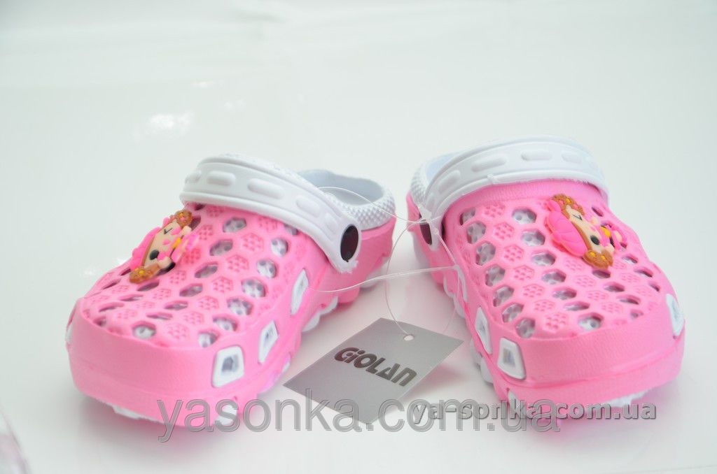 Кроксы для девочек. Яркая, красочная расцветка. Декор - джибитс с девочкой. Изготовлены из  пенового материала. Обувь очень легкая, легко моется, быстро сохнет.  Есть супинатор для профилактики плоскостопия.