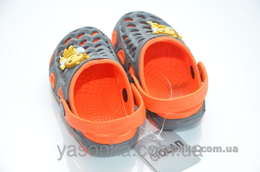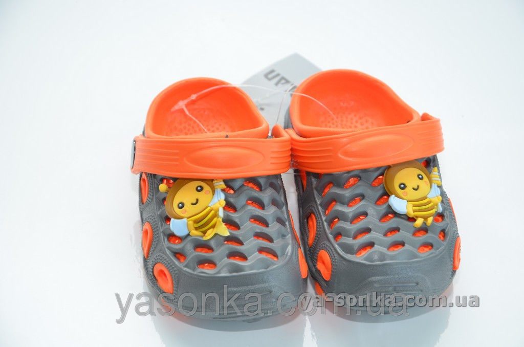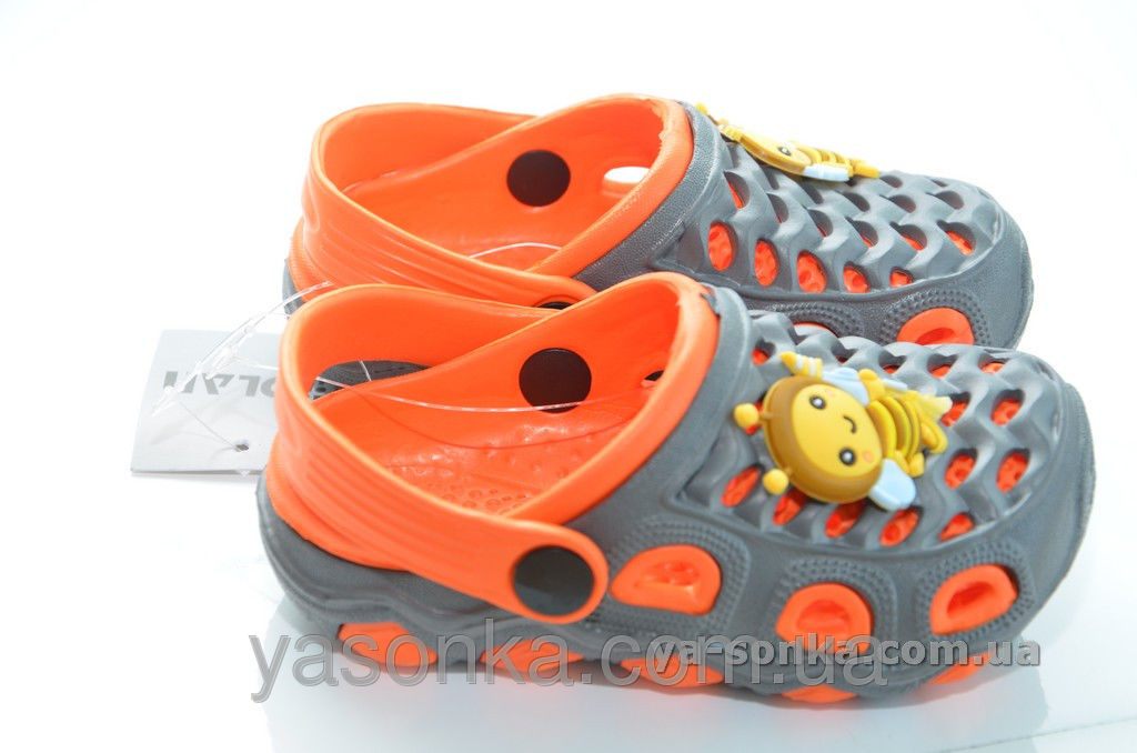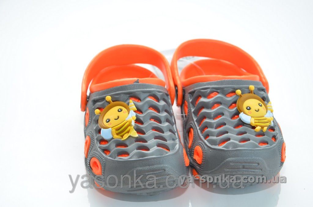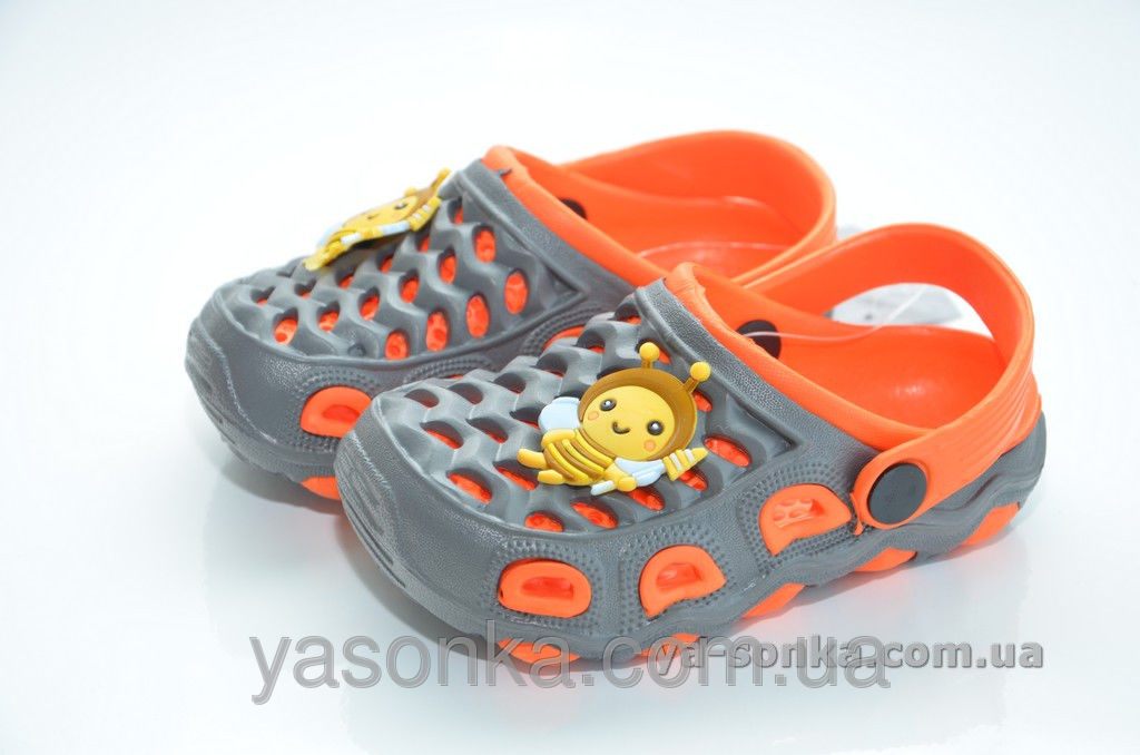Кроксы для мальчика. Яркая расцветка. Декор - джибитс с пчелкой. Изготовлены из пенового материала. Обувь очень легкая, легко моется, быстро сохнет.  Есть супинатор для профилактики плоскостопия.