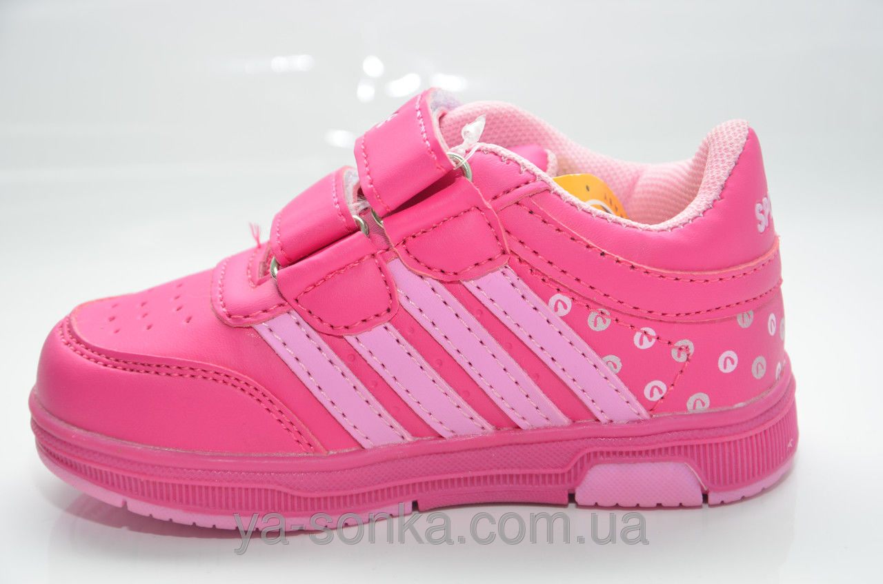 Стильные, гламурные кроссовки для маленькой модницы. Изготовлены из качественного кожзама в любимой для девочек палитре розового цвета.