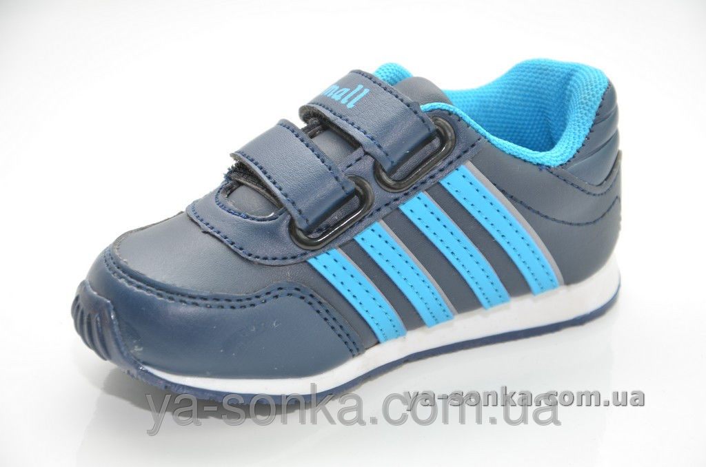 Изготовлены из современного качественного кожзама. Дизайн выполнен в двухцветной гамме. Декорированы контрастными полосочками, логотипом бренда.  Внутри текстиль. Две застежки-липучки. Удобные при обувании. Кожаная стелька. Модель с супинатором.
