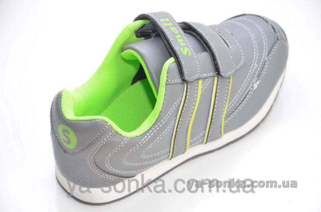 Кроссовки для мальчика выполнены из качественного кожзама в комбинации серого и салатового цветов.  Стелька текстильная с супинатором, твердый задник обеспечивают комфорт и правильное здоровое развитие детской ножки. Застежки на липучках. На застежках - логотип бренда.