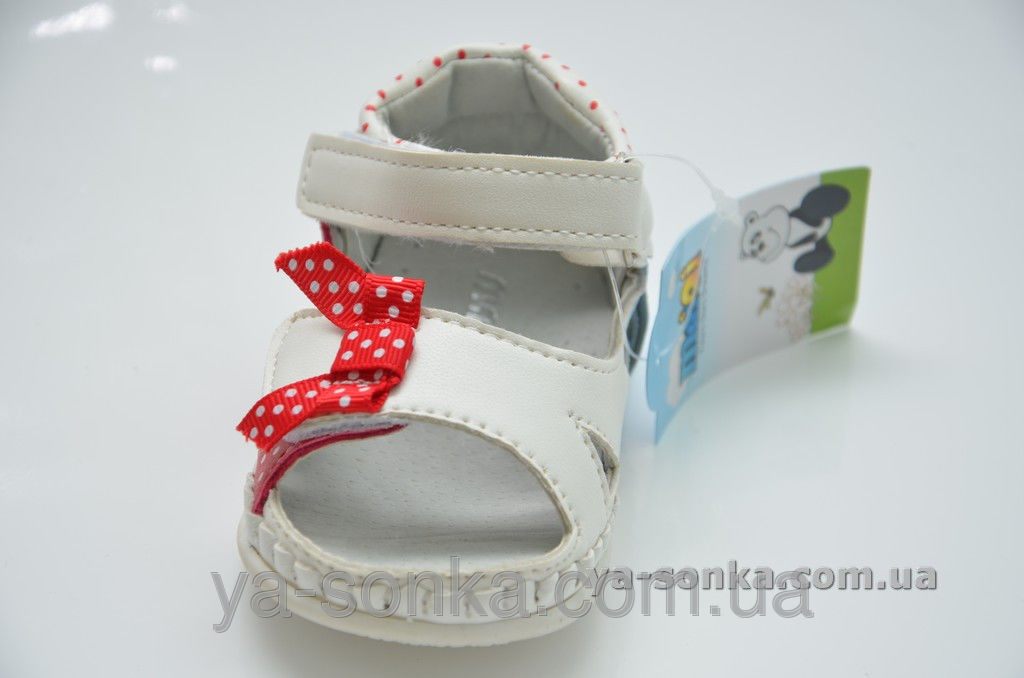 Изготовлены из качественного кожзама. Декорированы контрастными деталями, на застежке - красивый бантик. Ремешок с застежкой на липучке регулирует пинеточку на ножке. Расстегиваются обе застежки. Открытый носочек. Мягкий задничек. Внутри кожа. Кожаная стелька с супинатором для правильного формирования детской ножки. Подошва уплотненная, но легко сгибается. Очень удобное обувание.