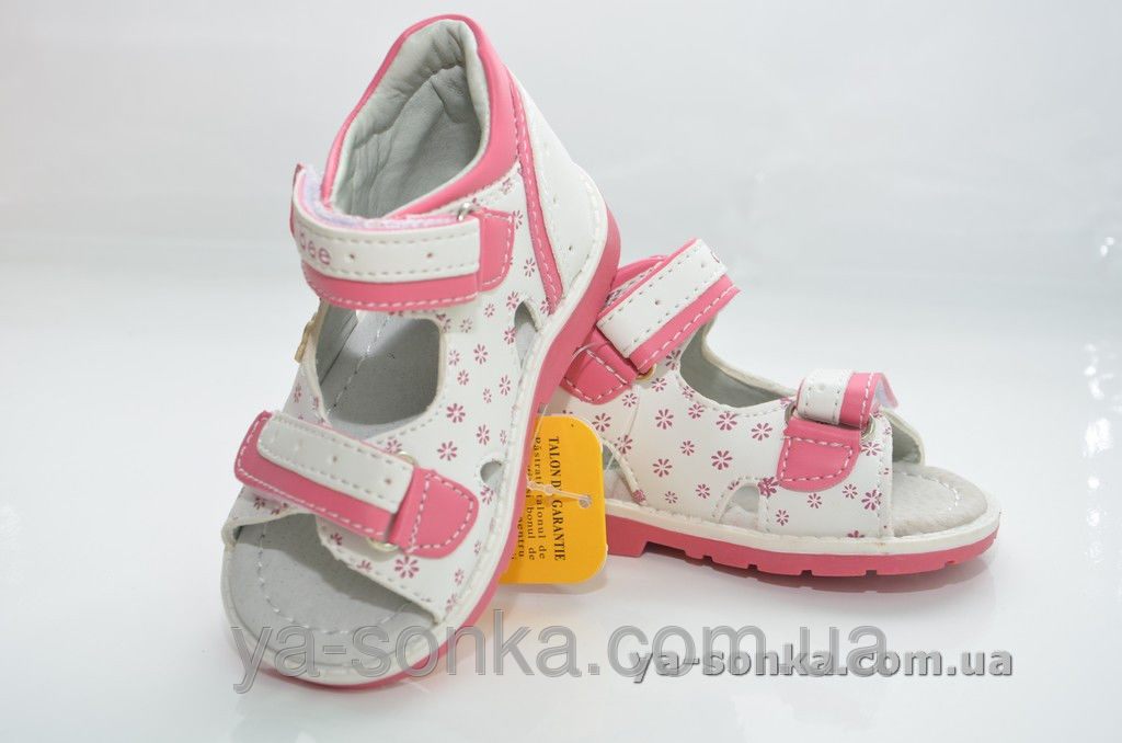 Босоножки-сандалии  для маленькой девочки изготовлены из качественного кожзама. Завышенный в меру жесткий задник. Открытый носочек.  Две удобные застежки на липучках зафиксируют босоножки-сандалии на детской ножке любой полноты. Кожаная стелька с супинатором, каблук Томаса выполняют профилактическую функцию в ортопедии. Нескучный современный дизайн понравится Вашей малышке.