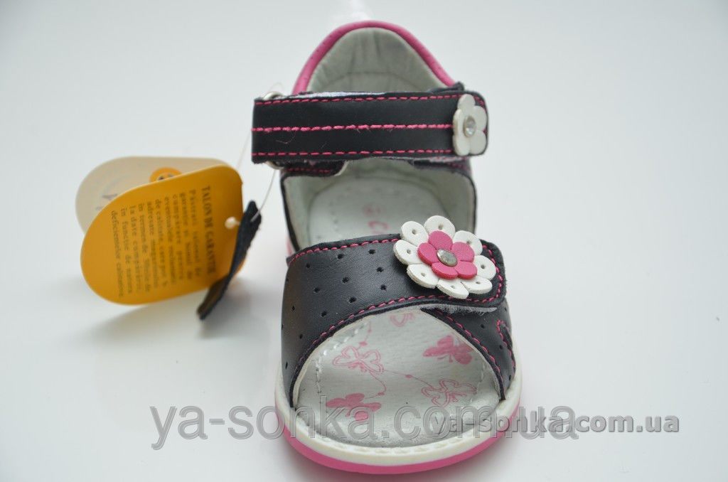Сандалии для девочки. Кожаный верх. Внутри кожа. Кожаная стелька. Модель с супинатором  для профилактики плоскостопия.   В меру твердая пятка, отрытый носочек. Каблук Томаса. Удобные функциональные застежки-липучки позволяют зафиксировать детскую ножку любой полноты. Модель сандалий предусматривает профилактику плоскостопия. Плюс - стильный и модный дизайн. Декорированы цветочками. Превосходная качественная здоровая модель для Вашего ребенка.