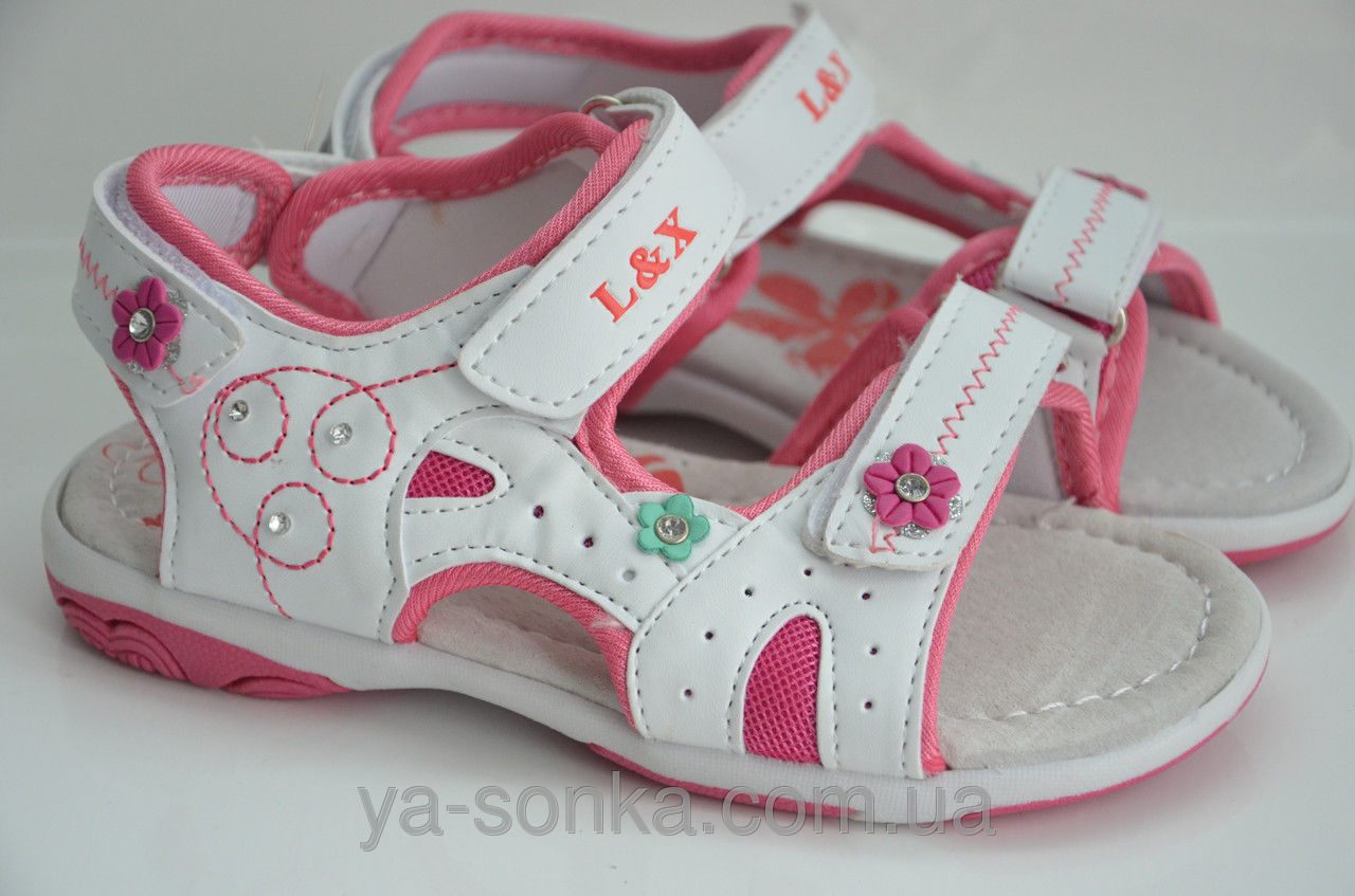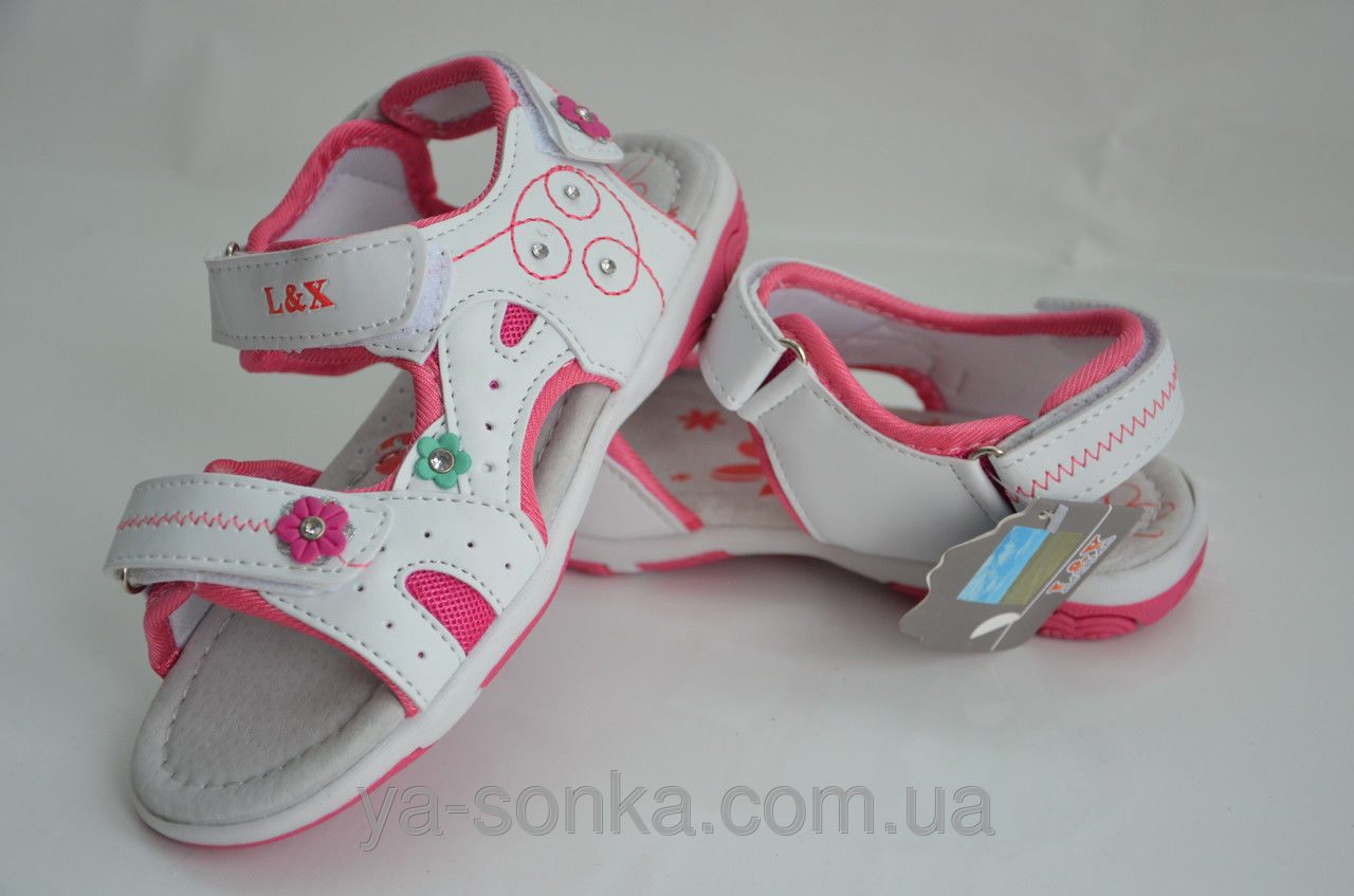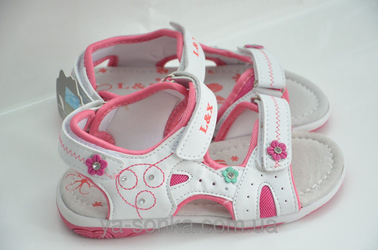 Открытые босоножки-сандалии для девочки изготовлены из качественного кожзама. Дизайн выполнен в спортивном стиле, дополненном милыми девичьими аксессуарами. Модель декорирована вышивкой, цветочками с камешками.  Есть три застежки на липучках, что позволяет максимально комфортно регулировать босоножки на ножке с любой полнотой. Внутри мягкие,  мягкое основание стелечки. Стелька кожаная  с супинатором.