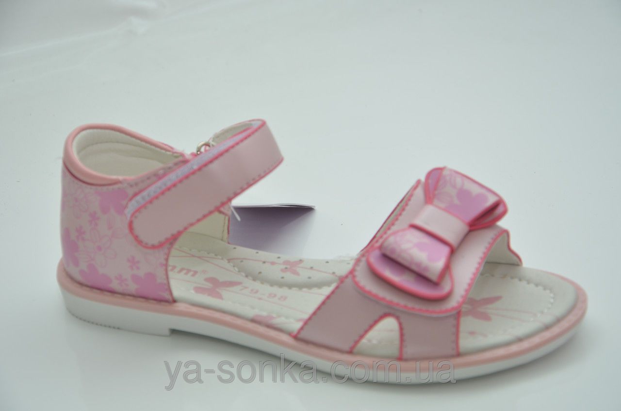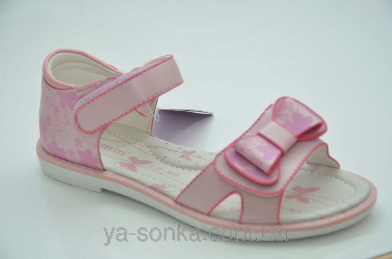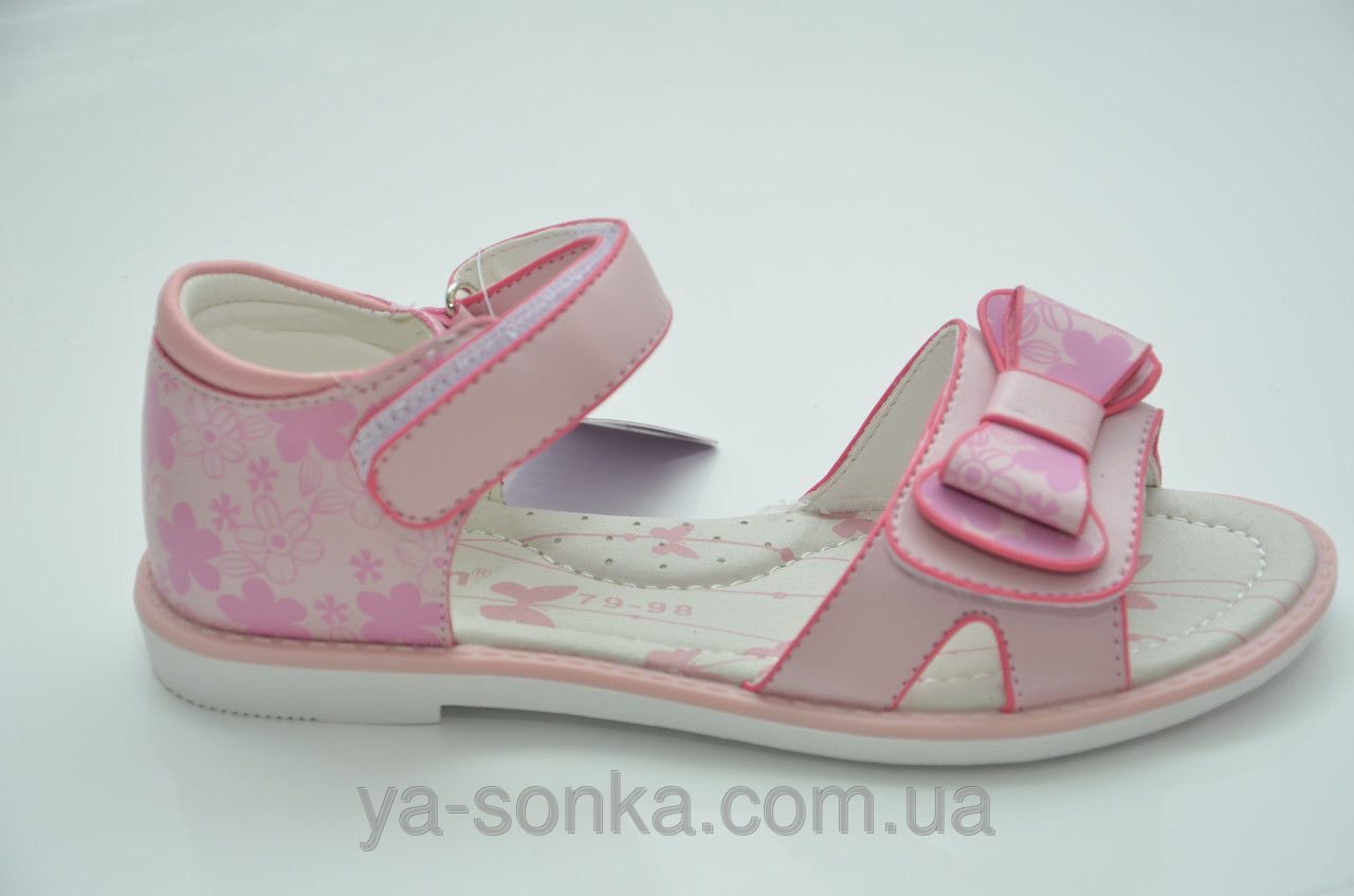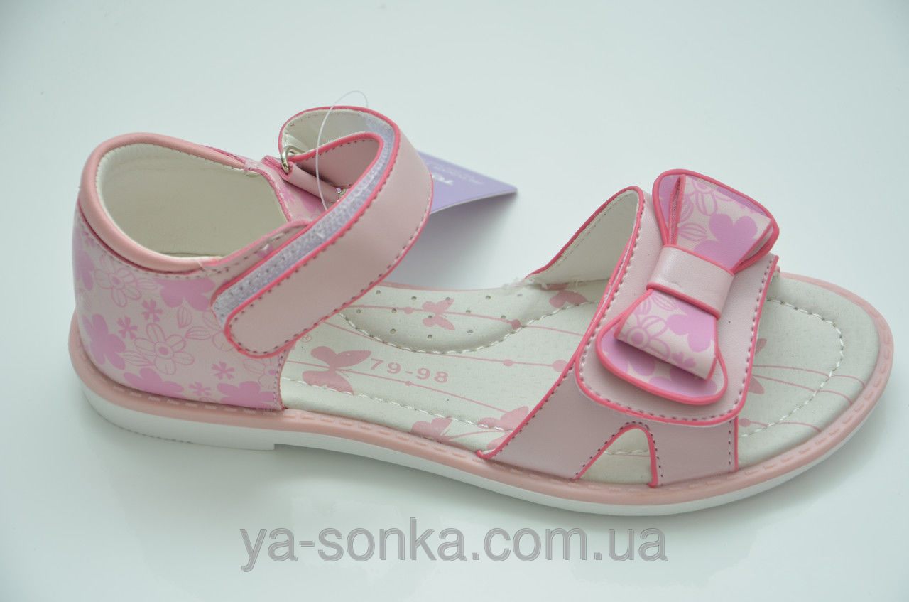 Босоножки выполнены из современного качественного кожзама в красивой оригинальной расцветке с цветочным принтом. Красивая нарядная модель украшена бантиком. Практичная застежка на липучке регулирует полноту детской ножки. Закрытый задник в меру жесткий. Стелька из кожи, есть супинатор для профилактики плоскостопия.