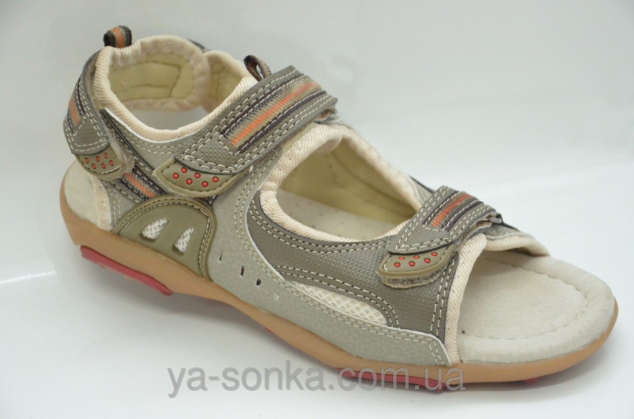 Модные сандалии для мальчика изготовлены из современного качественного кожзама. Дизайн выполнен в лаконичном спортивном стиле. Есть три функциональные застежки на липучках, что позволяет максимально регулировать модель на детской ножке с любой полнотой и подъемом. Внутри текстиль. Кожаная стелька с супинатором. Нескользящая подошва.
