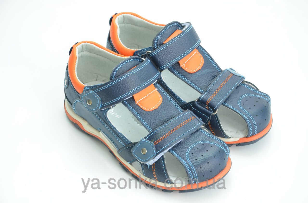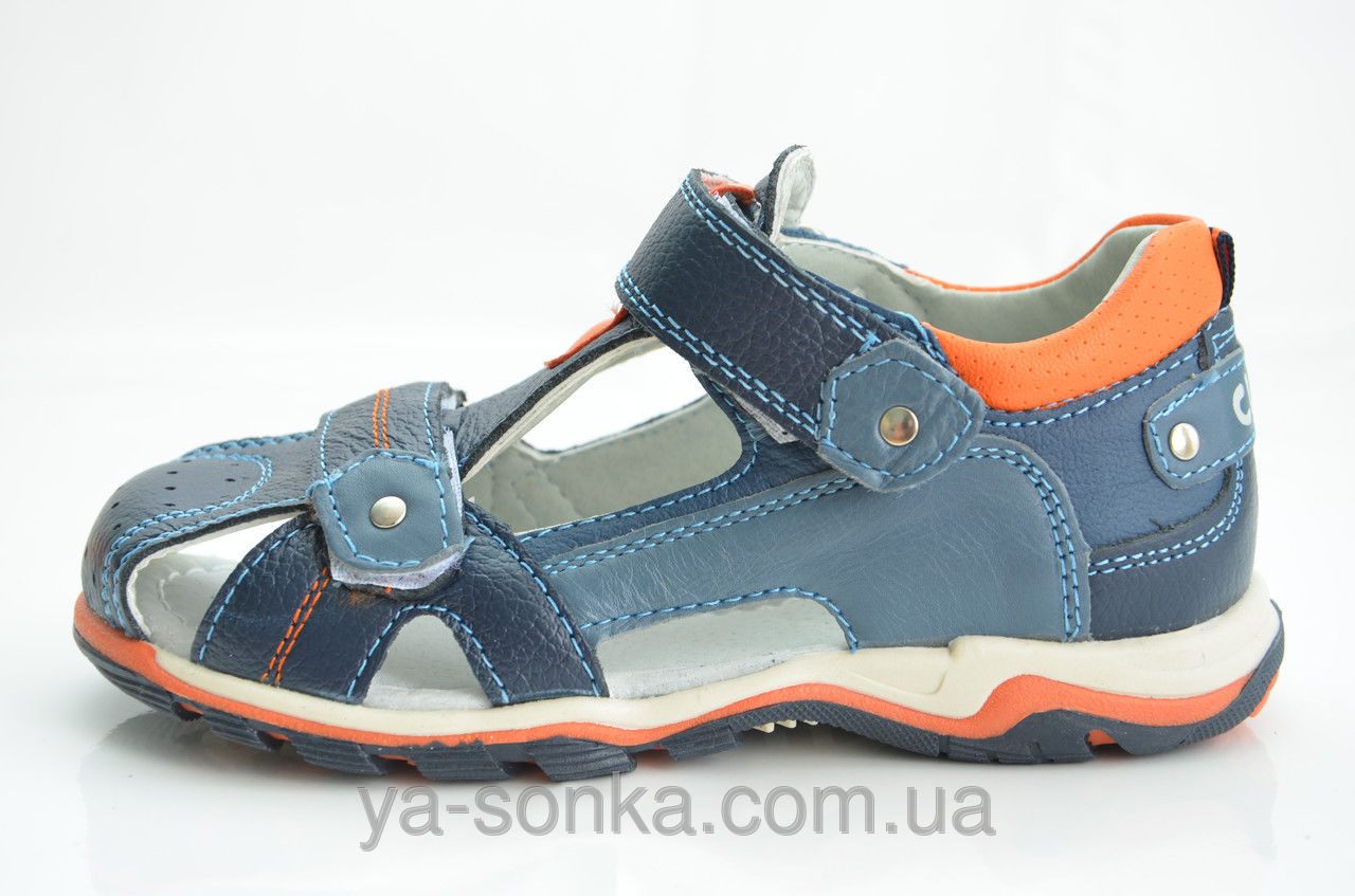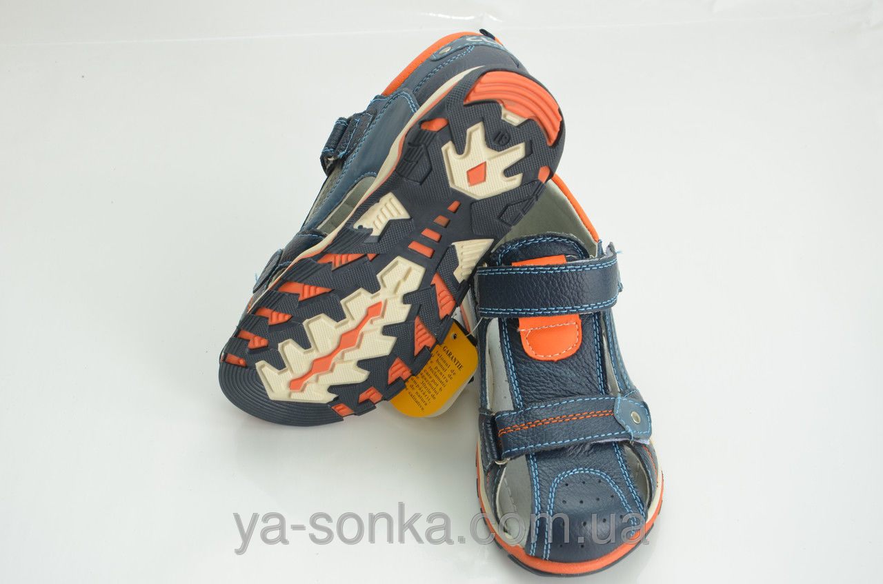 Модные и стильные сандалии для мальчика. Изготовлены полностью из кожи. В меру жесткий завышенный задник. Закрытый носочек. Кожаная стелька. Есть супинатор для профилактики плоскостопия. Две застежки-липучки зафиксируют ножку любой полноты.  Супер классная, комфортная и здоровая модель для парня.