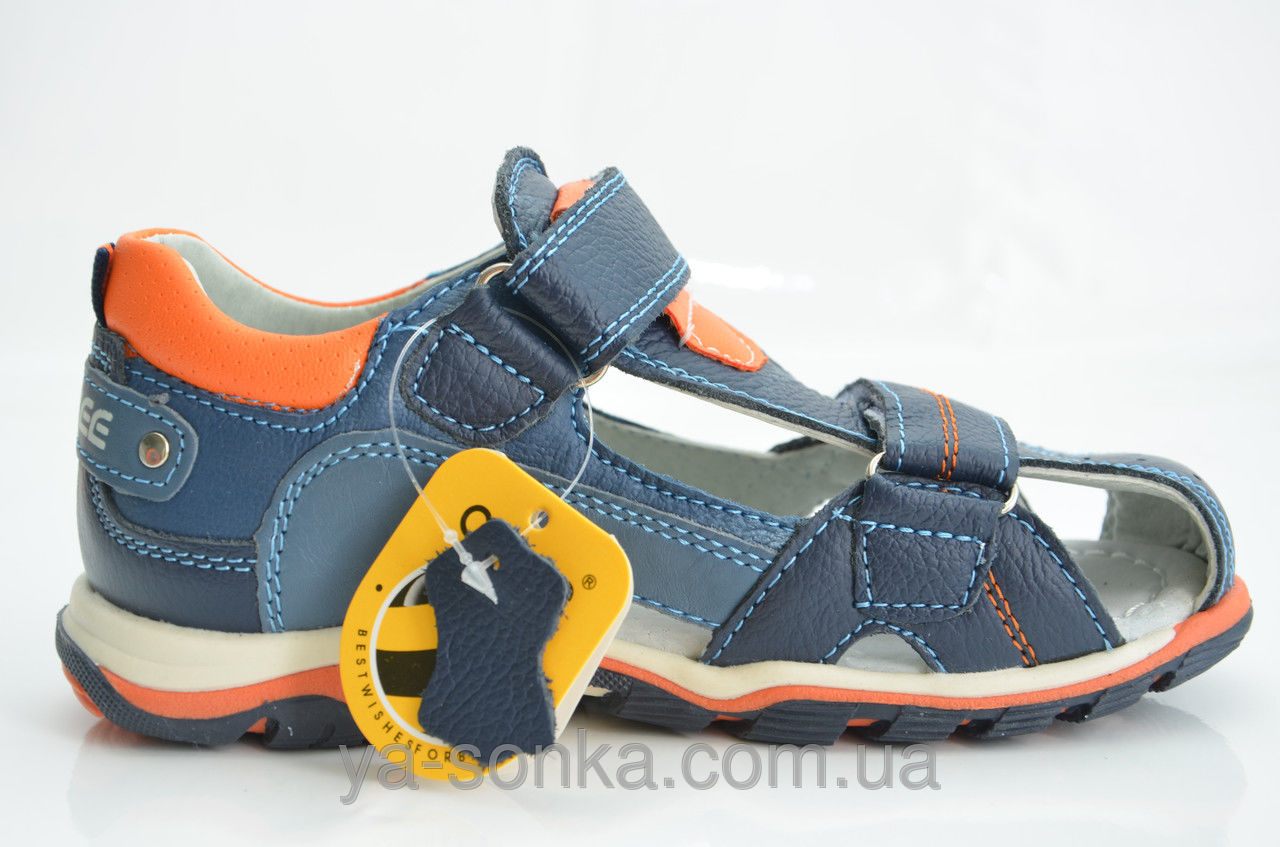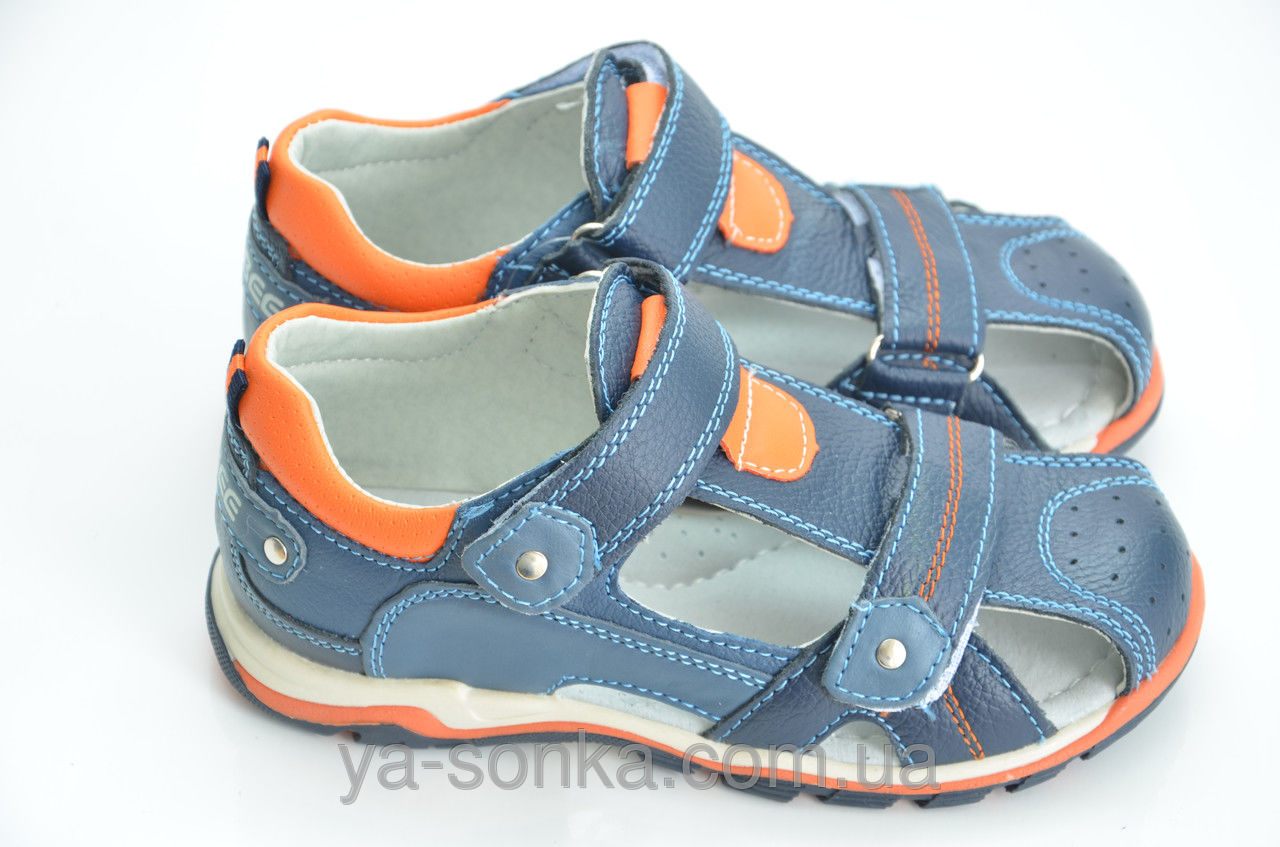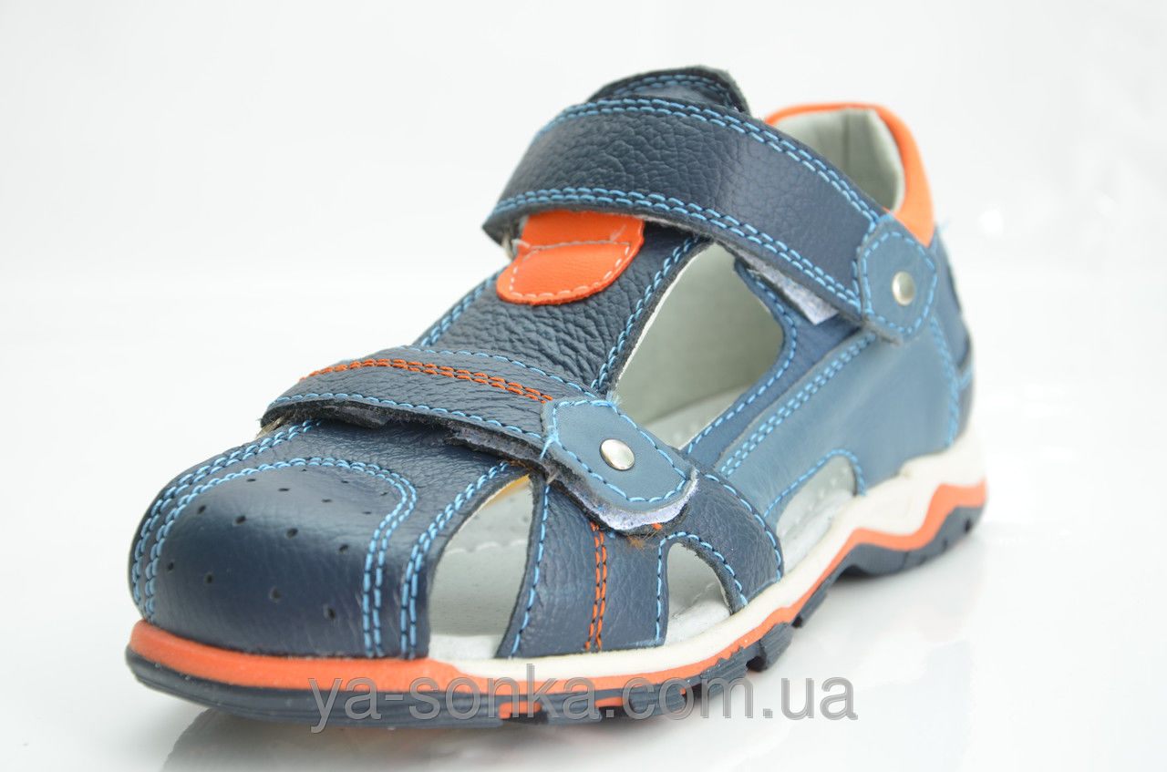 Модные и стильные сандалии для мальчика. Изготовлены полностью из кожи. В меру жесткий завышенный задник. Закрытый носочек. Кожаная стелька. Есть супинатор для профилактики плоскостопия. Две застежки-липучки зафиксируют ножку любой полноты.  Супер классная, комфортная и здоровая модель для парня.