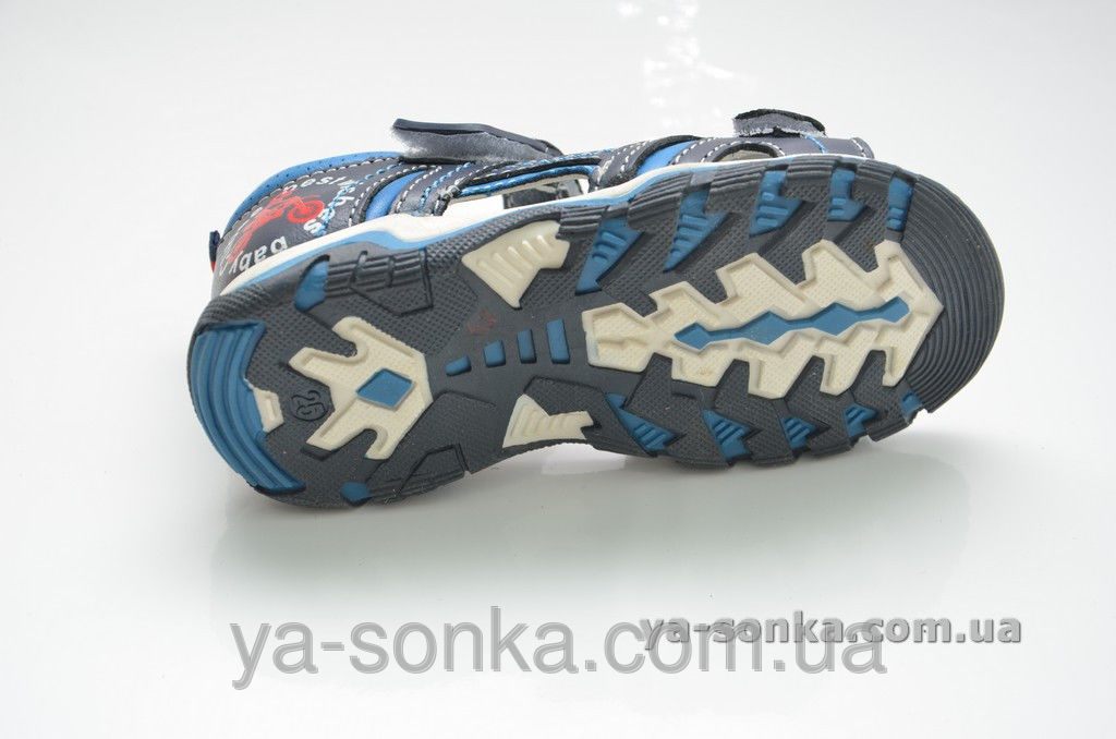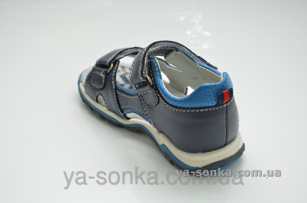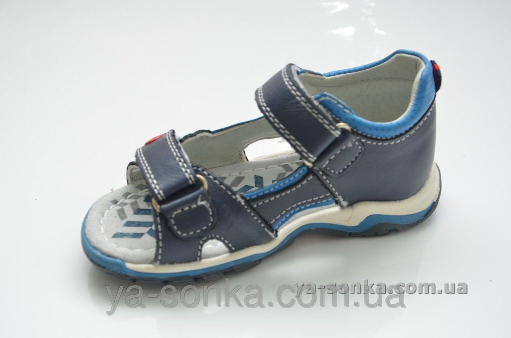 Модные сандалии для маленького мальчика. Кожаный верх. Закрытый, в меру жесткий задник. Открытый носочек.  Внутри кожаная стелька с супинатором. Две функциональные застежки липучки зафиксируют ножку любой полноты. Модный спортивный дизайн. Универсальная, комфортная, здоровая модель для Вашего мальчика.
