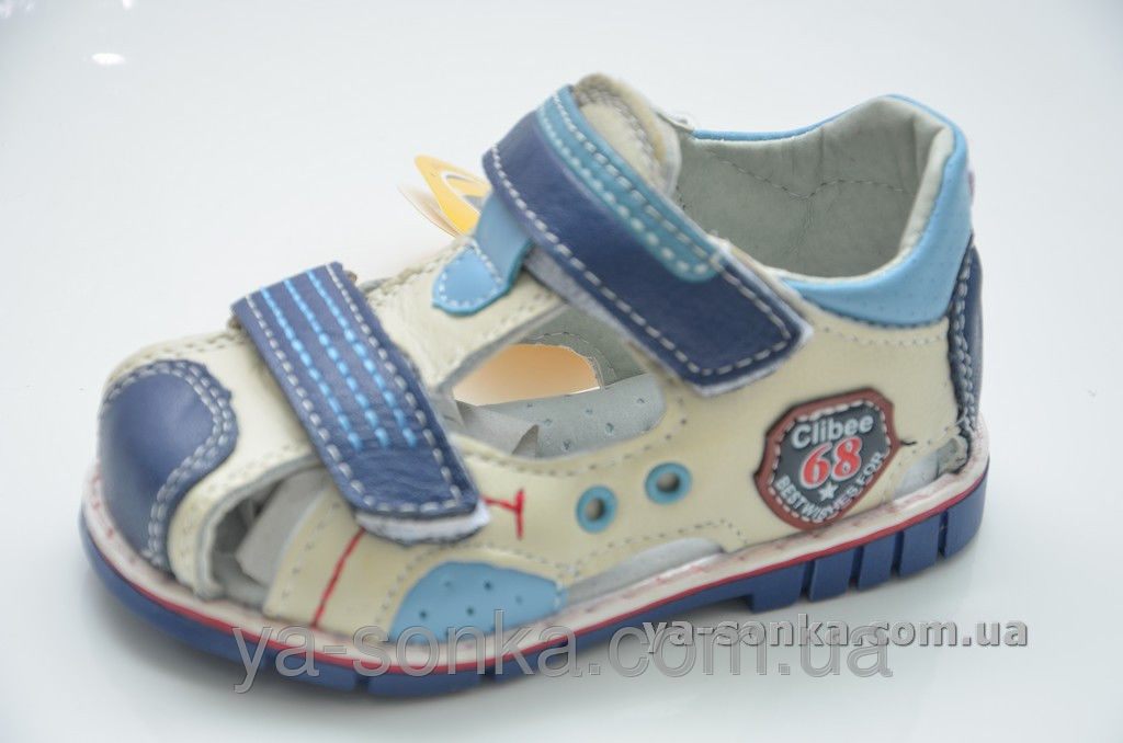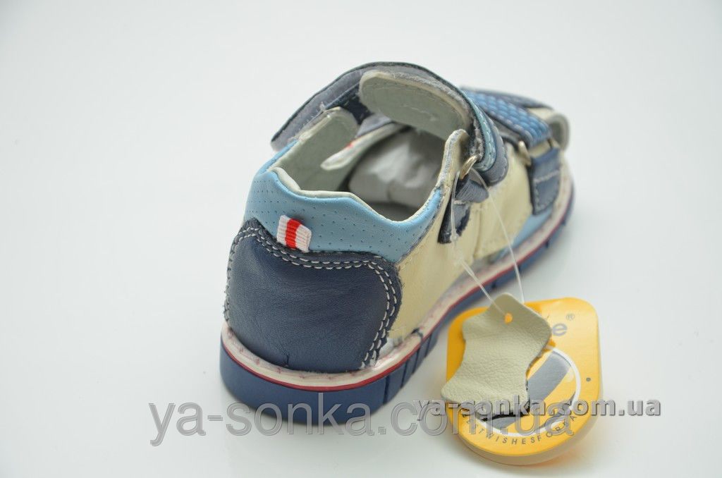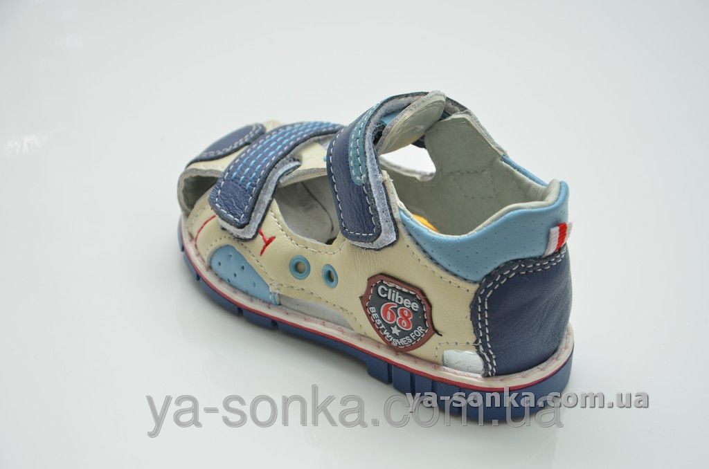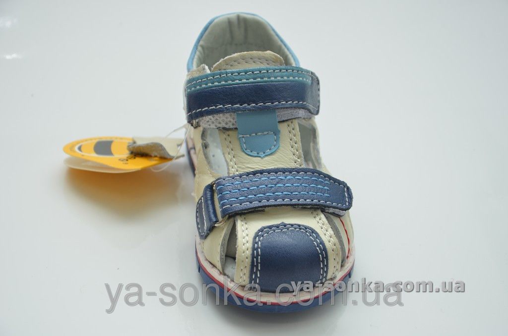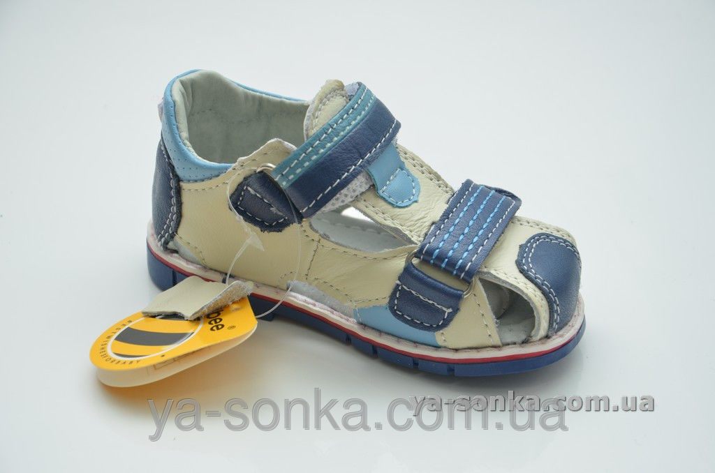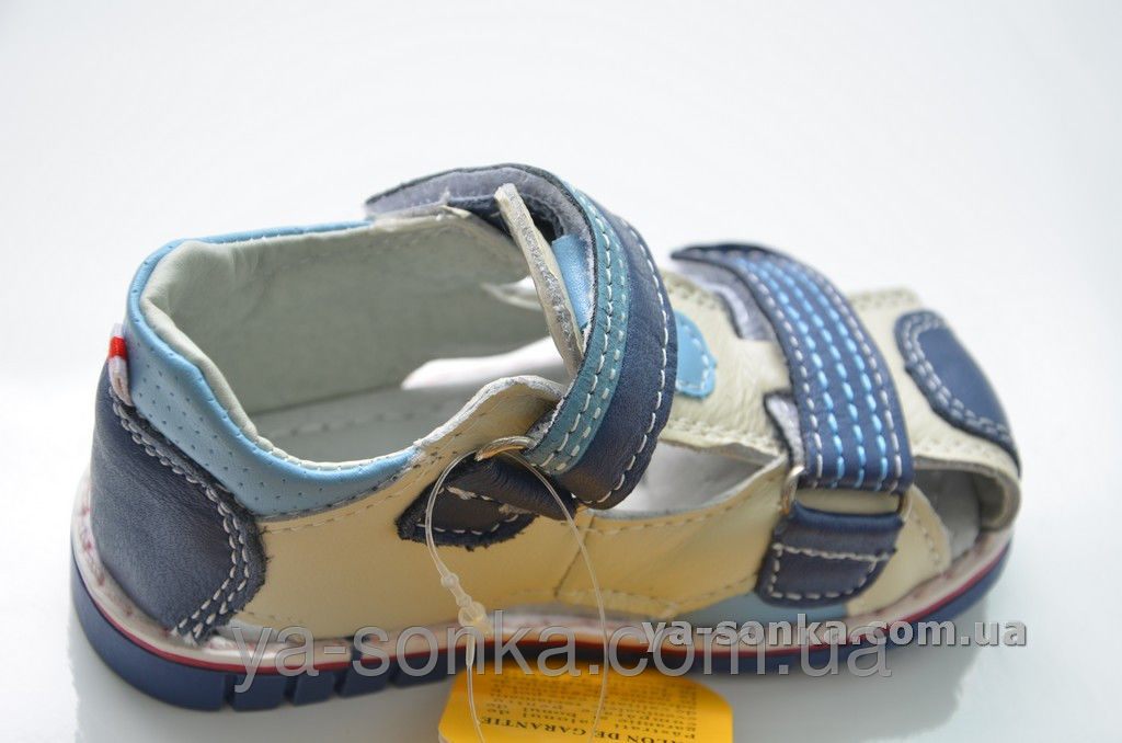 Модные сандалии для маленьких мальчиков. Кожаный верх. Закрытый в меру жесткий задник. Закрытый носочек.  Внутри кожаная стелька с супинатором. Две функциональные застежки липучки зафиксируют ножку любой полноты. Модный спортивный дизайн. Универсальная, комфортная, здоровая модель для Вашего мальчика.