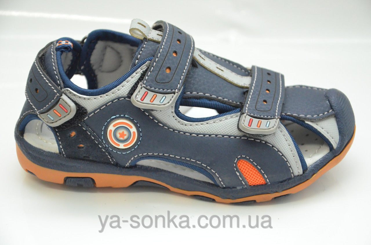Модные и стильные сандалии для мальчика. Изготовлены из современного качественного кожзама. Прорезиненный носочек защищен от сбивания, что позволит продлить срок службы обуви и при этом сохранить хороший товарный вид. Прикрытая пятка. Три функциональные застежки на липучках позволят максимально точно зафиксировать сандалии на детской ножке. Удобно снимать и обувать. Внутри мягкий текстиль. Кожаная стелька. Есть супинатор.