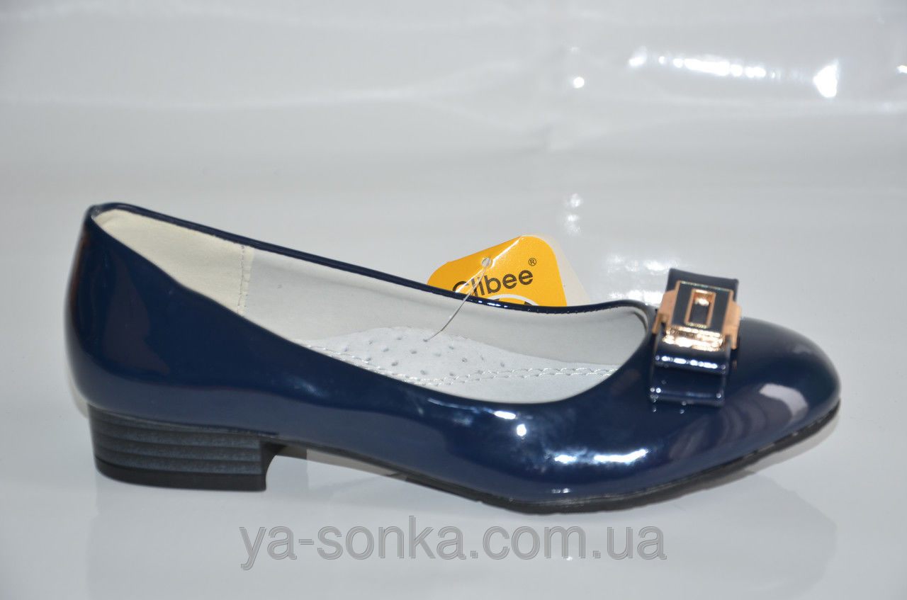 Элегантные  туфельки для девочки сделаны из качественного кожзама синего цвета. Стильно и модно смотрятся на детской ножке. Очень практичный вариант для повседневного выхода. А также удачно может дополнить  и праздничный гардероб. Модель украшена стильным  бантиком с "золотой" брошкой.