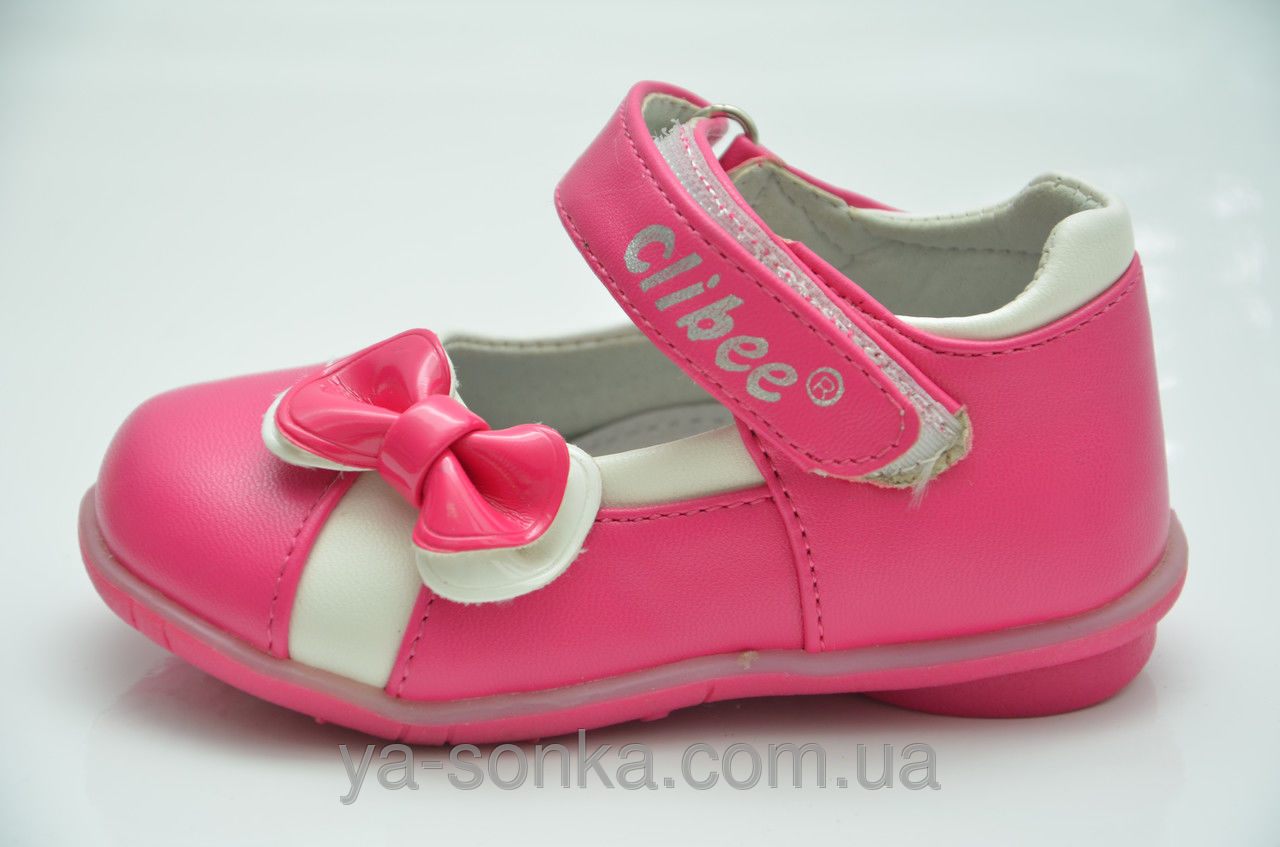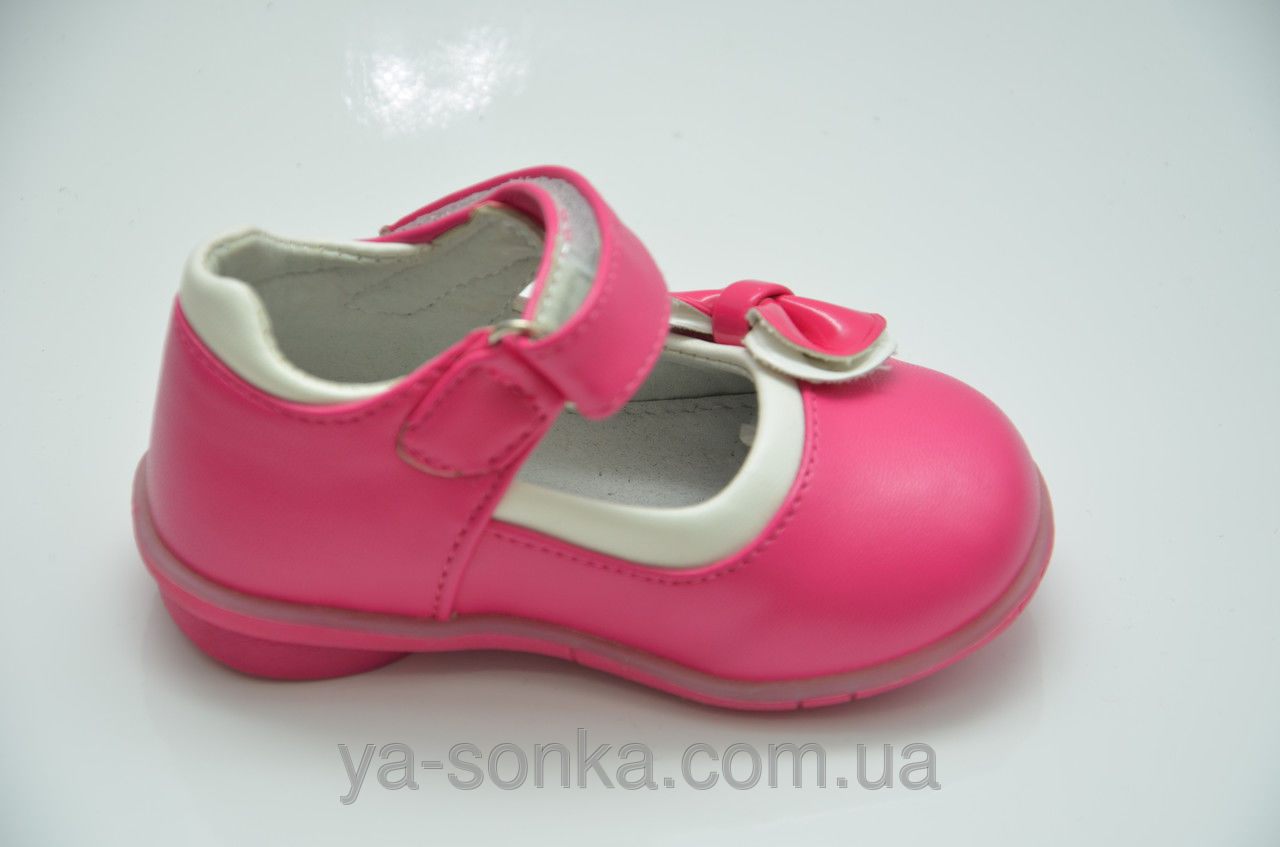 Очень изящная модель для маленькой принцессы. Выполнены  из качественного кожзама в комбинации двух цветов. Туфельки на ремешке, застежка-липучка регулирует полноту. Украшены бантиком, на ремешке логотип бренда.