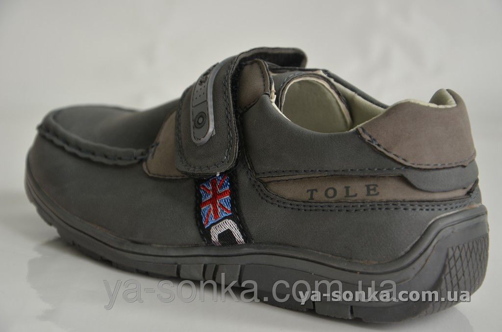 Туфли-мокасины для мальчика. Выполнены из качественного современного заменителя. Широкий носочек. Застежка на липучке регулирует полноту. Стильный аксессуар - британский флаг.  Кожаная стелька, есть супинатор.