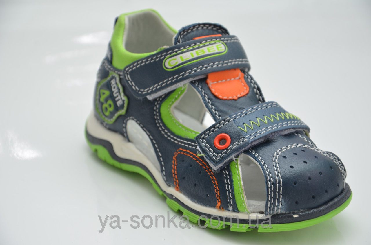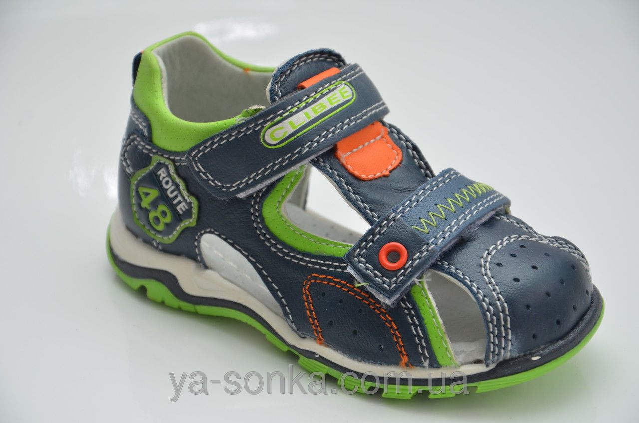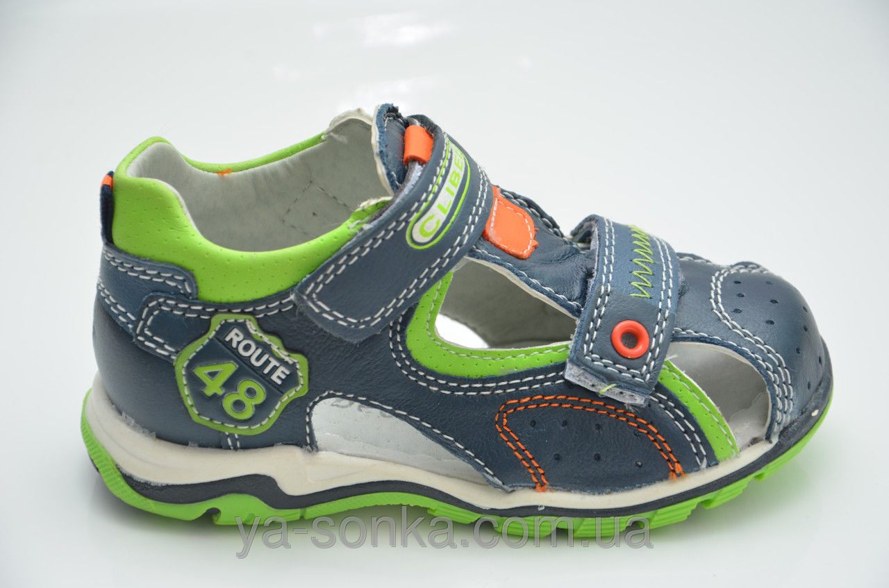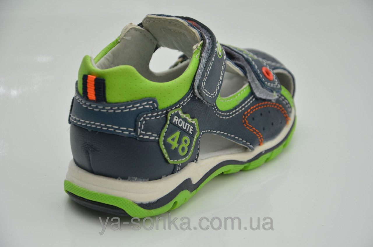 Модні сандалі для маленьких хлопчиків. Шкіряний верх. Закритий в міру жорсткий задник. Закритий носочок. Всередині шкіряна устілка з супінатором. Дві функціональні застібки липучки зафіксують ніжку будь якої повноти. Модний спортивний дизайн. Універсальна, комфортна, здорова модель для Вашого хлопчика.